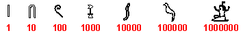В различните етапи на развитие на тази древна цивилизация са се появявали и други символи. При изписване на дадено число символите били подреждани хоризонтално. Еднаквите символи можели да се групират, а записите изразявали предимно натурални числа. Така например числата от естествения ред се означавали както следва: