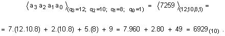 от цели числа, удовлетворяващи условията (1.1.1.2). Този кортеж може да се приеме за единствен запис на числото А в адитивно-мултипликативна бройна система с коефициенти