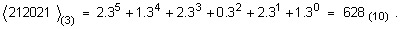 При тези означения, записът например на десетични цифри в една последователност (7259) с тегловни коефициенти 12, 10, 8 и 1 ще означава следното число