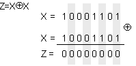 В програмирането на асемблерен език много често логическата операция NEQ от еднакви операнди (XÅX) се