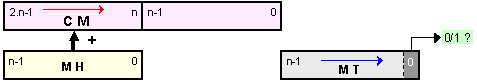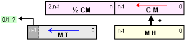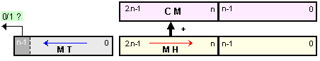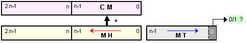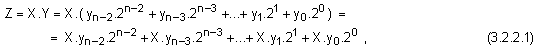 Сумата (3.2.2.1) изразява същото произведение, но предлага друг начин за изчисление. Тази сума също е натрупваща, но нейните събираеми са винаги толкова на брой, колкото са разрядите на множителя или по-точно на цифровата част на разрядната мрежа, в която той е представен, ето защо нейното времетраене няма да зависи от модула на множителя.
