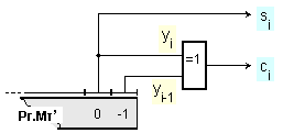 Идеята за ускоряване, върху която е синтезиран този алгоритъм, се основава на възможността в множителя да се срещат компактни групи от еднакви цифри. Съществуват разнообразни реализации на алгоритъма както върху метода за умножение с младшите разряди напред, така и върху метода за умножение със старшите разряди напред. Тук обаче ние ще се ограничим само с варианта, който може да се реализира в базовите логически структури от фигура 3.2.2.1.1 или фигура 3.2.2.2.1.