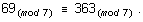 Тогава Rx1=R(69/7)=6, Rx2=R(363/7)=6. Тъй като остатъците са еднакви Rx1=Rx2 , заключаваме, че