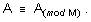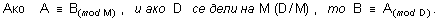 Две числа Х1 и Х2 са сравними по модул М тогава и само тогава, когато при делението им с числото М, се получават еднакви остатъци, което се записва така