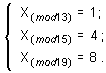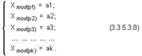модул P=p1.p2.p3. … pk на следната система от сравнения: