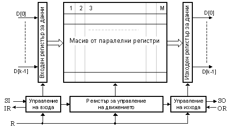множество изместващи регистри с общо управление. Тази своеобразна памет е с