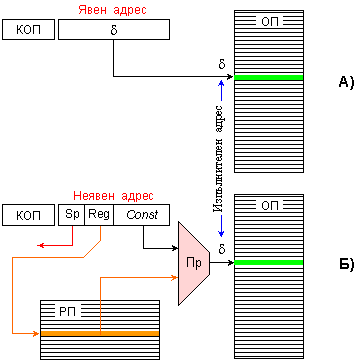 Изясняването на начините за преработка на адресната част на командата, с цел получаване на изпълнителния адрес, означава изясняване на алгоритъма и апаратурата за реализация. И както отбелязахме в началото, това следва да се отнася както за достъп до клетки, в които се съдържат операндите на командата, така и за достъп до клетки, от които следва да се извлече следващата команда. Това ни дава правото да разглеждаме методите за адресиране от две различни гледни точки, свързани с вида на извличаната от паметта информация. Така тук, в тази книга, в следващите раздели ще разгледаме: