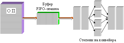 Ясно е, че наличието на няколко функционални устройства в отделна степен на конвейера създава възможността за тяхното паралелно функциониране. Ако тази възможност се реализира, естественото последствие за конвейера се изразява в необходимостта от увеличаване темпа на неговото захранване с команди. Увеличаване на темпа на конвейера означава в крайна сметка повишена производителност.
