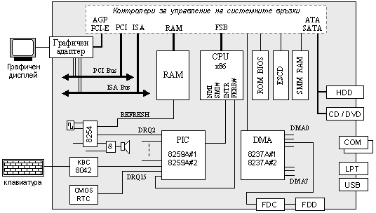 Ще се спрем първо върху състава на една типична IA-32 РС-съвместима платформа, която е илюстрирана на следващата фигура: