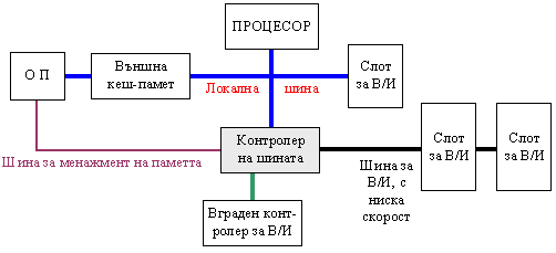 Фиг. 5.5.3.3. Дву-шинна архитектура (локална + шина за В/И)