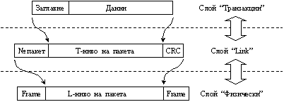 Повечето от пакетите се инициализират в нивото на транзакциите (описан по-долу). Протоколът предава пакетите само в случай, че приемащият буфер е свободен, с което се избягват повтарящи се транзакции и се разтоварва шината. Повторното предаване на повредени пакети се осигурява от нивото “Link”.