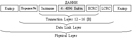 Форматът на PCI Express пакетът е показан на следващата фигура.