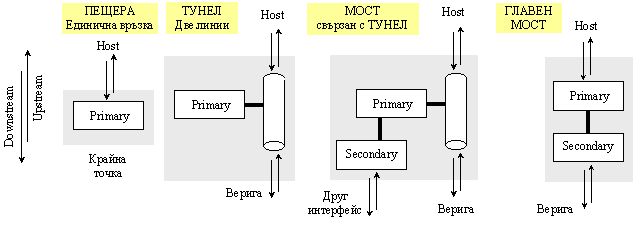 · Устройство “пещера” (Cave). Крайно устройство в един двупосочен НТ канал за връзка (използва се само за вход) ;