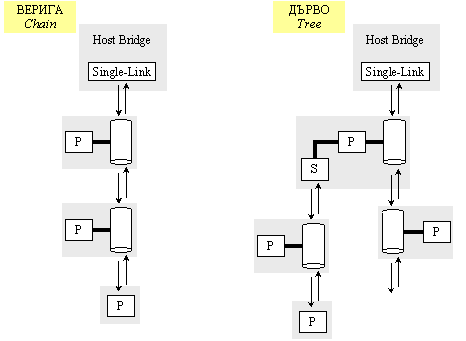 Фиг. 5.5.3.3.5. Топология “Верига” и “Дърво”
