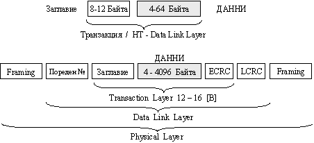 Фиг. 5.5.3.3.7. Формати на пакетите в HT и PCI Express интерфейси