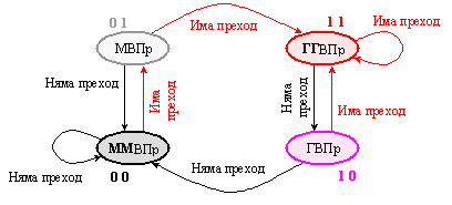 състояние (00). В това състояние следващата прогноза винаги е “няма преход”.