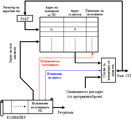 конвейера, се окаже команда за условен преход, с нейния адрес се извършва