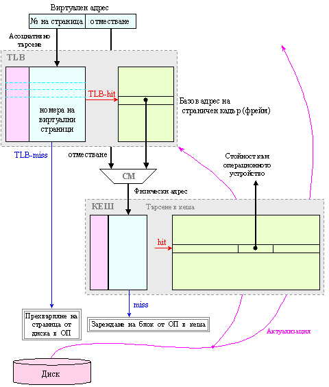 преобразуване (проектиране) на виртуалния (логическия) адрес във физически са