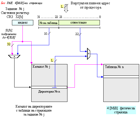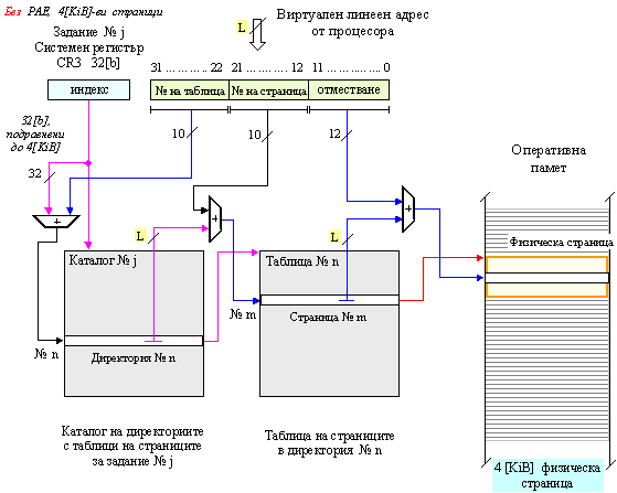 установен), но без PAE, процесорите x86 използват двустепенна схема за