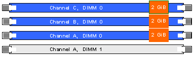 Този режим е активиран, когато четири (или кратно на четири) DIMM модула са идентични по капацитет и скорост и са поставени в четири-канални слотове. Когато са инсталирани два модула памет, системата работи в двуканален режим. Когато са инсталирани три модула памет, системата работи в три-канален режим.