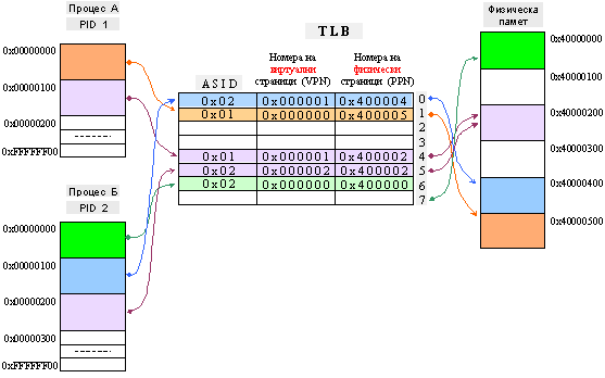 MMU виртуален адрес, претърсването на TLB се извършва с помощта на комбинацията VPN и ASID. В резултат първата