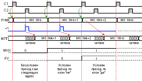 Алгоритмичните (адресните) преходи, които реализира микропрограмния брояч са безусловни и последователни. За съжаление обаче, както много пъти беше отбелязано, алгоритмичните структури са доста по-разнообразни. Например, едно обикновено условно разклонение не може да се реализира само с микропрограмния брояч, тъй като за него следва да се укажат два възможни адреса. Ето защо тук ще бъдат необходими и други микрокоманди, чиято задача ще бъдат тези преходи.