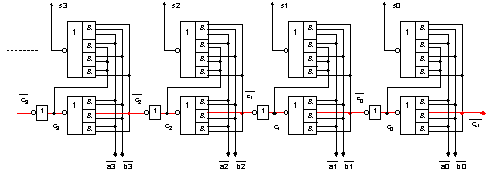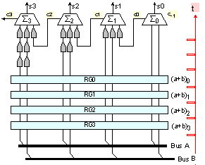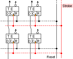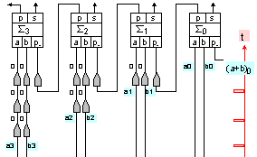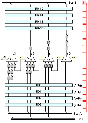 Тези тригери реализират необходимата задръжка на един такт. Продължителността на задръжка, която представлява периода на тактуващата последователност (период на управляващите импулси Strobe), трябва да се настрои спрямо времето за превключване на едноразрядния комбинационен суматор.