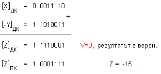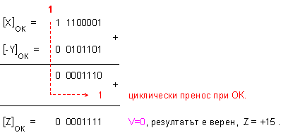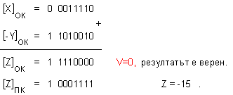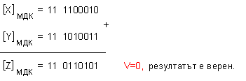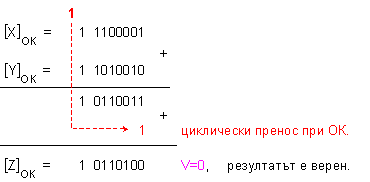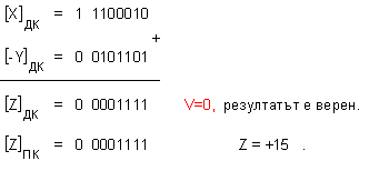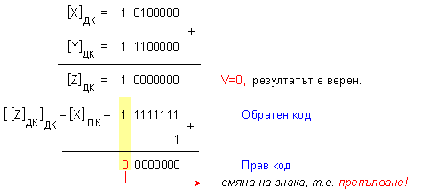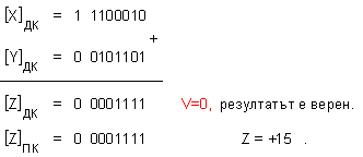 В този раздел ще илюстрираме чрез множество числени примери изпълнение на операции от тип събиране (събиране и изваждане в допълнителен код), при което искаме да покажем всички особености на операциите с използване на машинните кодове.