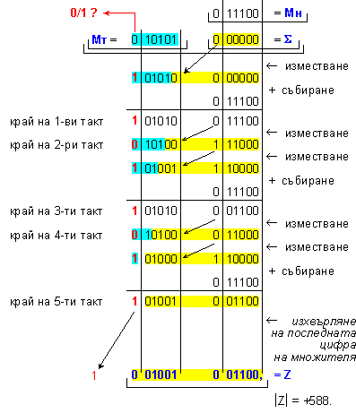 Б) УМНОЖЕНИЕ СЪС СТАРШИТЕ РАЗРЯДИ НАПРЕД ПО СХЕМАТА С НЕПОДВИЖНО МНОЖИМО
