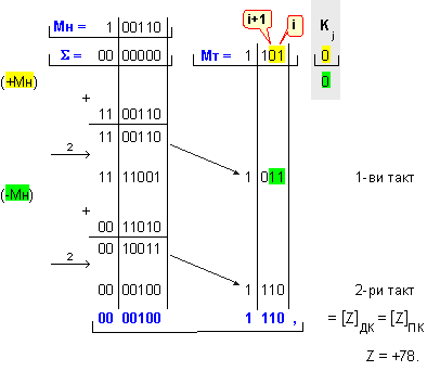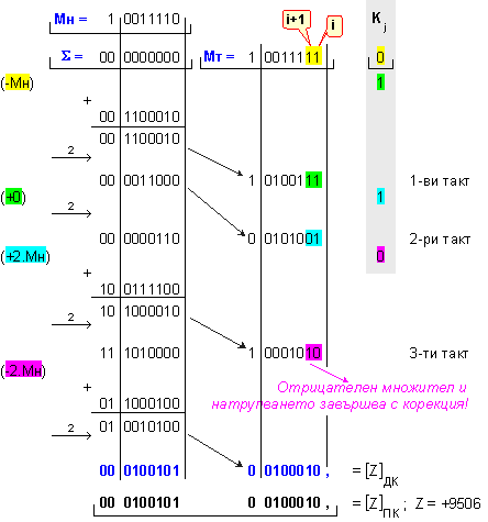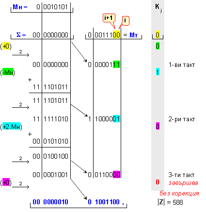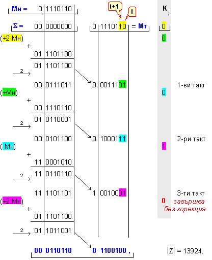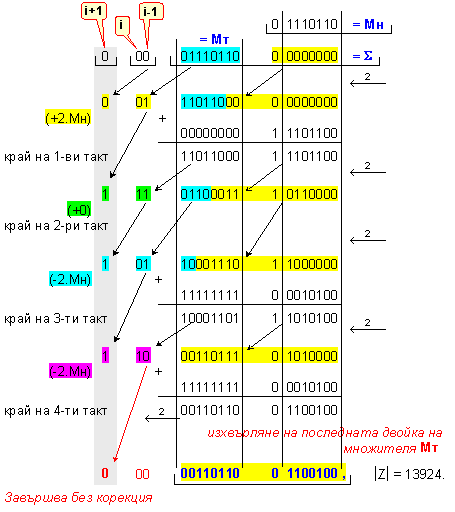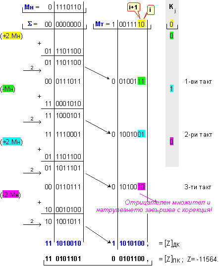 умножение Z=X.Y на числата X=118 и Y=-98, които
