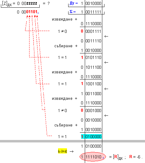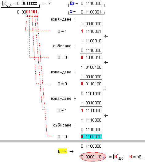 частно Z=+13 и остатък R=-6,