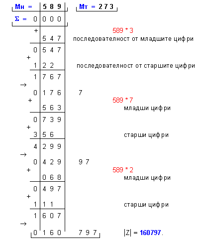 умножение Z=X.Y на