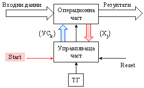 е, че за постигане на хардуерната реализация на общи алгоритмични структури с