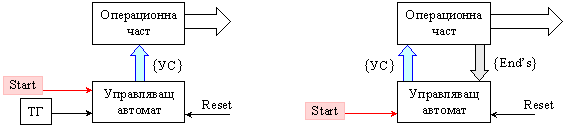 изпълнява функциите си след подаване на външен сигнал, формално означен “Start”.