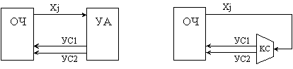 чрез принадлежността на управляващите сигнали към множеството на оповестяващите