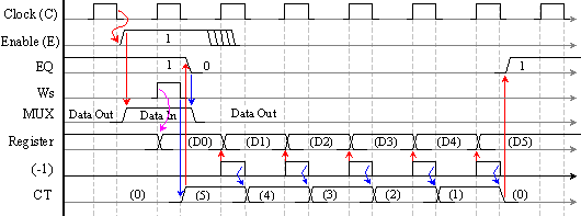 превключващи се по заден фронт. Освен тях има и един двоичен декрементен кръгов