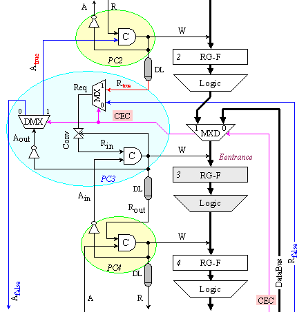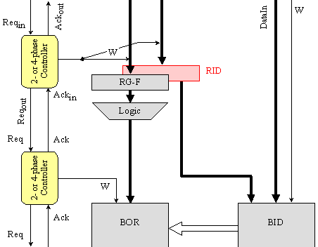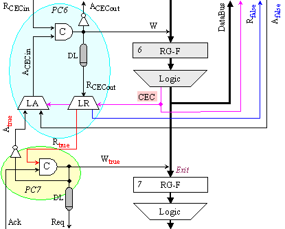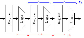 В структурата от фигура 3.1.2 съвсем условно, под микроконвейерно звено може да се разбира двойката регистър-логика (случай А) или двойката логика-регистър (случай В).