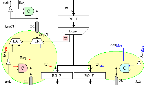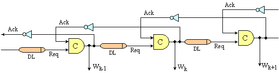 Според класическото разбиране, под конвейер (микроконвейер) се разбира последователно включени конвейерни звена, чиято задача е да реализира поредната операционна преработка на порция данни. В този смисъл конвейерното звено е специализирана за дадена операция (логическа или аритметическа) хардуерна структура. Тази структура, в най-елементарния смисъл, се състои от регистър фиксатор и комбинационна логическа схема, а в общия случай това може да бъде сложна самостоятелна структура. Фиксаторът поддържа данните, а комбинационната схема реализира необходимите изчисления, но като такава не е задължителна. След всеки един записващ импулс, подаден към фиксатора (конвейерен регистър), в даденото звено постъпват и започват да се преработват нови данни. Така при всеки записващ импулс резултатът от едно звено преминава в следващото звено. В смисъла на това управление, конвейерните звена с такава структура могат да бъдат определени като еднотактни. Продължителността на тактовете в отделните звена се определя от продължителността на времето за превключване на комбинационната схема на звеното. Придвижването на данните в асинхронни конвейери от споменатия тип, от звено към звено, се реализира въз основа на принципа, наречен “ръкостискане”, в 2-фазов или 4-фазов асинхронен протокол. Протоколът се реализира от управляваща схема, която съдържа някакъв вариант или аналог на описания вече Мюлер С-елемент. Същността на управлението е асинхронна, тъй като придвижването на текущите резултати от звено към звено, е възможно само ако последното е свободно.