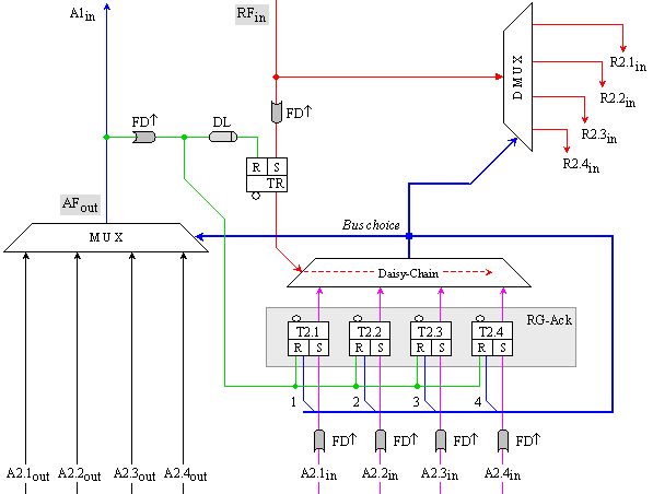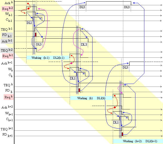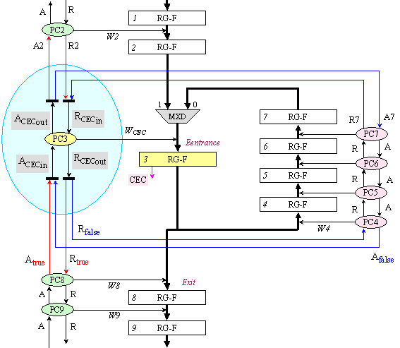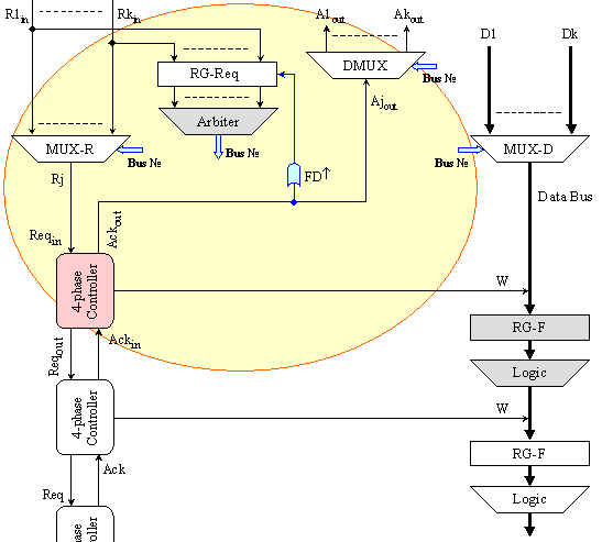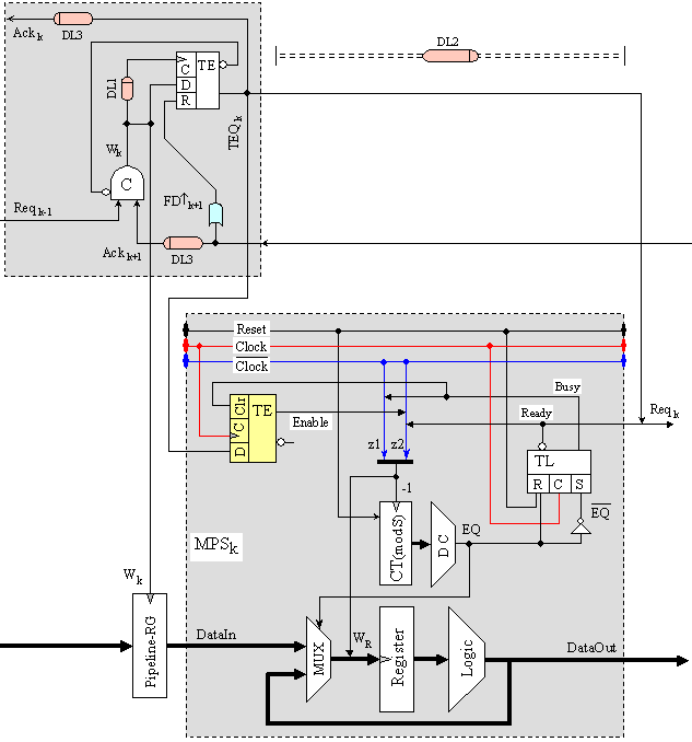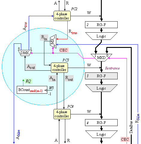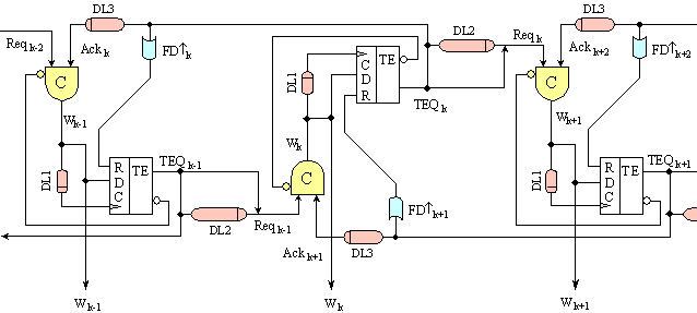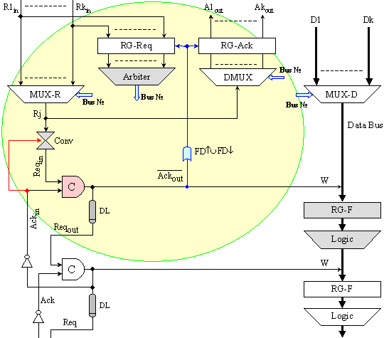 Изложеното в глава 2 налага ново определение за многотактовите микроконвейерни звена. Синтезирани като синхронни устройства, те си приличат по това, че съдържат вътрешна обратна връзка. Обобщената логическа структура на звената от този вид е представена на фигура 3.1.1.