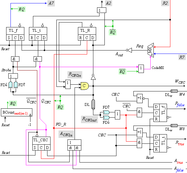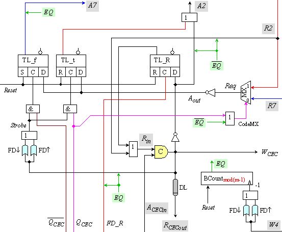 автомат. Представена е неговата принципна логическа схема и организацията на