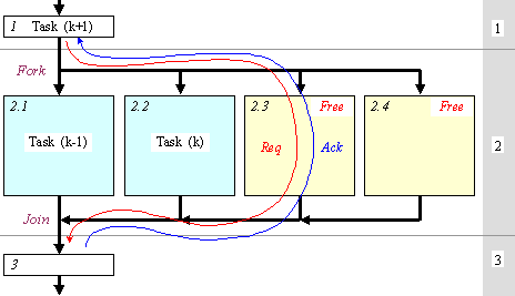 Разпределената част се представя от индивидуалните автомати на паралелните